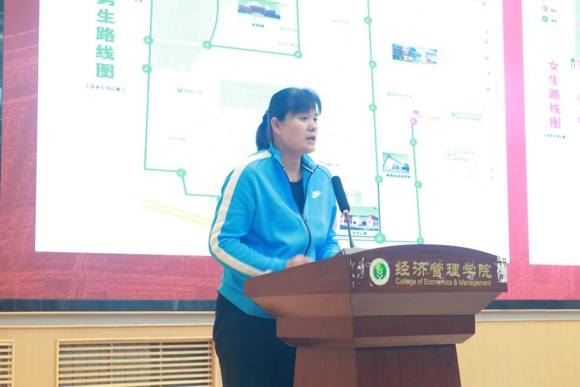 动员会上,体育辅导员王鲜老师就比赛路线图以及注意事项进行了详细讲解。从赛前的热身准备、饮食搭配,到赛中的呼吸节奏、体力分配,再到赛后的拉伸放松、身体恢复,并特别强调了安全问题,提醒参赛选手务必遵循比赛规则,量力而行,若身体不适切勿勉强,确保自身安全的同时享受比赛过程。