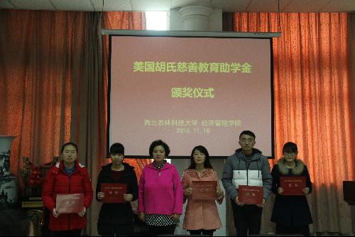 听完受助员工代表的发言,王晓明女士表示,通过今天的颁奖仪式可以看出,胡氏基金会的每一分捐款真正用到了最需要的员工身上,她寄语所有受助员工:物质上的贫困是暂时的,精神上的富裕才是永久的,希望大家能踏实求学,不断攀登新的高峰,挑战人生中遇到的挫折。同时她也会把同学们的问候带给大洋彼岸的胡奶奶,希望明年再来西农时,能与大家做更深入的交流。