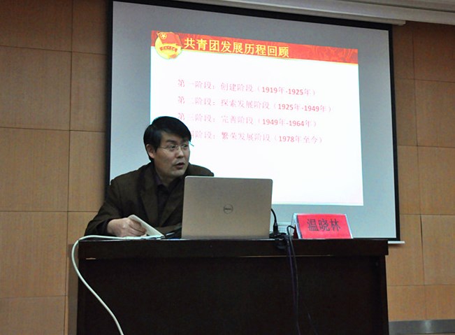 温晓林首先带领大家回顾了共青团的四个发展阶段:创建阶段、探索发展阶段,完善阶段和繁荣发展阶段。他讲到今年是建团第95周年,在当今优越的生活条件下,广大共青团员仍不可忘记陈独秀,李大钊等革命前辈为创立共青团所立下的汗马功劳,应当系统学习团的基本知识,并结合中国共产主义青年团的性质,告诫员工“不忘初心,继续前进。”