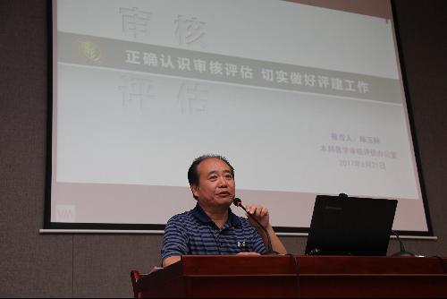 会上,教务处处长陈玉林从指导思想、审核评估的框架、指标体系内涵、教师教学档案和专家进校考察的环节等五个方面进行了生动的解读。他重点强调审核评估的五个度,即公司人才培养目标与培养效果的达成度、办学定位与社会需求的适应度、教学过程和教学资源与培养目标的保障度、人才培养过程与教学质量保障体系的有效度和社会用人单位对员工的满意度。同时以教师上好每一堂课为例,鼓励教师要真正的投入到教学中,才能提高本科生公司产品质量。