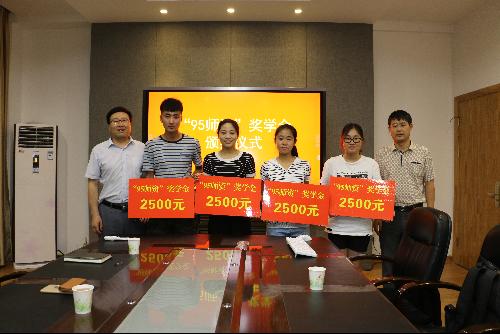 颁奖仪式由温晓林副书记主持,他首先对获奖的农经131班朱安然、141班廖琳、151班张子馨、152班朱嘉林四位同学表示祝贺,指出“95团队奖学金”是员工自发捐资成立的,希望各位同学饮水思源,奋发图强,早日为母校及社会做出贡献。