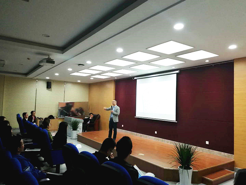 廖总是地地道道的西安人,与同学们的交流方式也是十分亲切,他从一个问题入手——“到底如何选择适合我的第一份工作”,廖总提取了三个关键词——“选择”、“适合”、“第一份”。从“选择”讲起,廖总给我们分享了深圳这个地点,深圳是值得我们选择的地方,具体介绍了深圳的自然环境、青春氛围、竞争压力和人才保障。接下来,他谈到“适合”,一个企业适不适合自己,关键要看企业性质、导师机制、公平通道和发展态势。随后,廖总指出“第一份”的重要性,既然康佳是值得选择的、是适合的,那么第一份工作这个重大决定还是要慎重考虑的,需要正确的认识自己,分析自身,做出决定。最后,他结合康佳集团现状重点阐释了两个问题。第一,认识康佳,具体介绍了康佳概况、大事件、业务布局、业务板块、发展战略、企业文化;第二,人在康佳,具体介绍了康佳能给我们带来的职业发展平台、人才培养通道、文体活动、工作生活、薪酬构成和福利待遇。