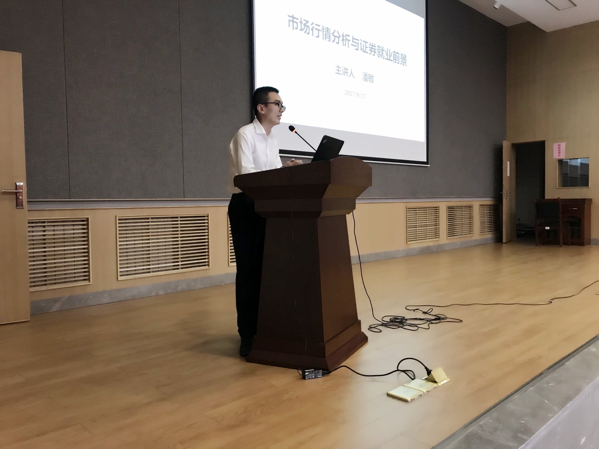 9月27日晚,williamhill官方网站于经管园林大楼C101报告厅举办证券投资分析报告会,本次报告会邀请到优秀毕业生潘敏——现任九州证券陕西分公司运营总监作为主讲人,公司金融学专业百余名员工到场参加。