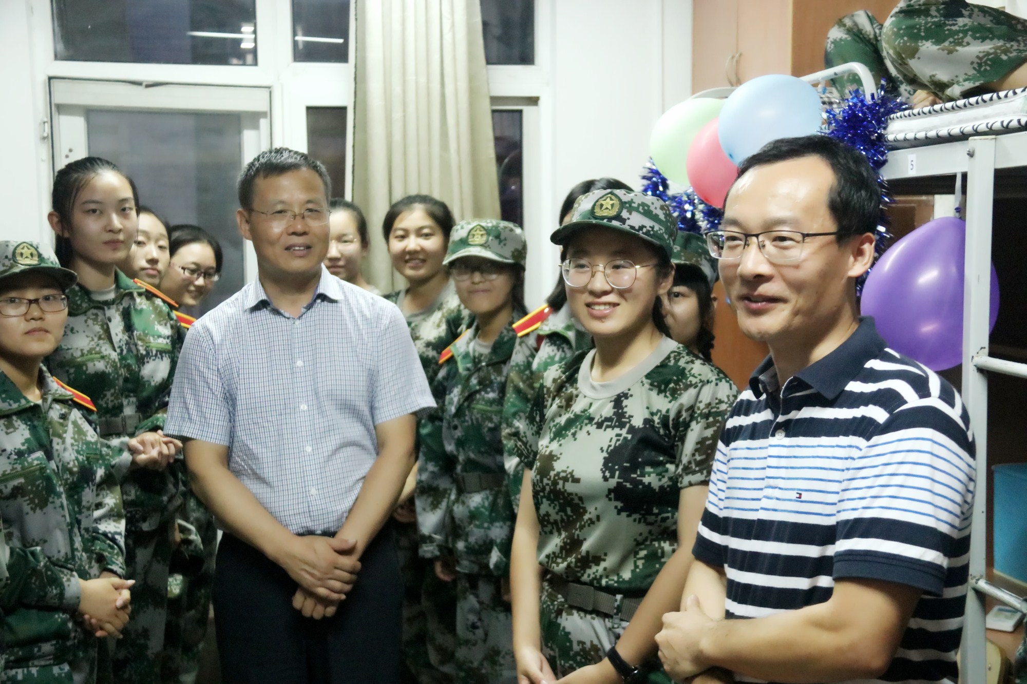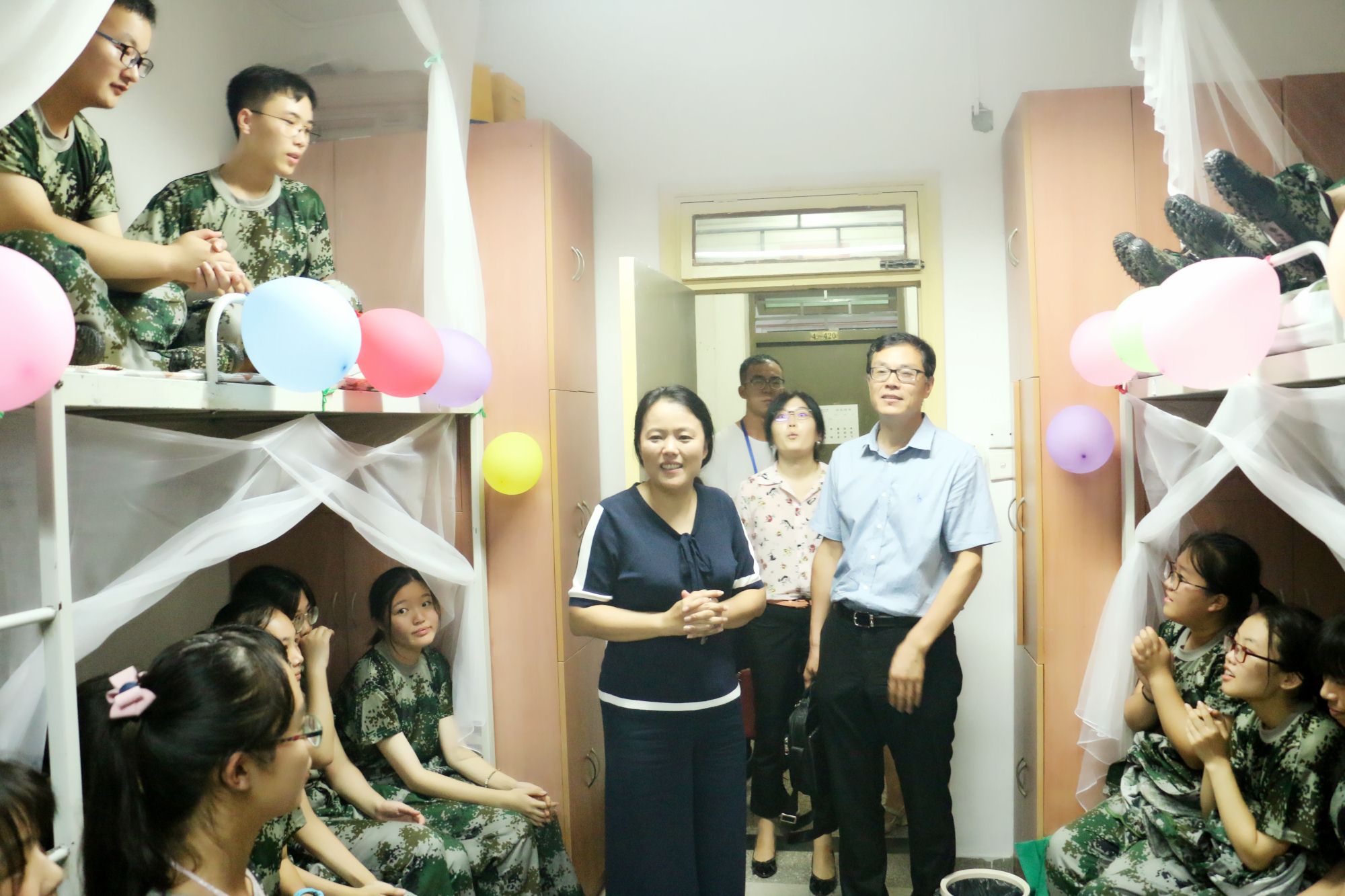 8月26日晚,公司组织2018级各员工班于西区四号公寓楼召开“班级见面会”。带着对新生的牵挂,公司党委书记张岁平、经理赵敏娟、副经理王云峰、副经理石宝峰、经理助理牛荣在全体学工干部的陪同下走访宿舍看望新生,各班主任及班主任助理参会,全体新生着军训服参加。