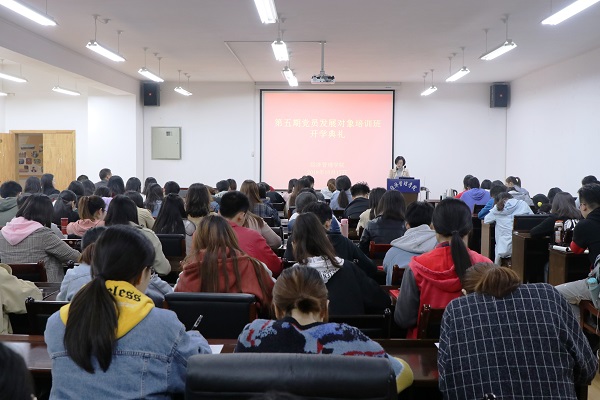 为深入学习贯彻习近平新时代中国特色社会主义思想和党的十九大精神,落实“全面从严治党”和新时期发展党员工作安排部署,强化对党员发展对象的理论武装,10月17日晚,williamhill官方网站在经管园林大楼C401会议室举办第五期党员发展对象培训班开学典礼。公司党委书记张岁平,培训班班主任王倩茹出席典礼,特邀马克思主义公司副经理郭洪水教授作学习辅导,全体学员到场参加。