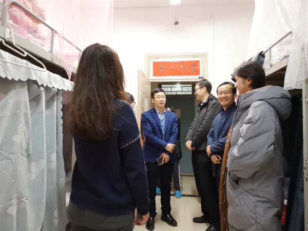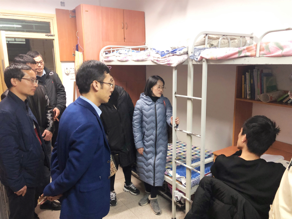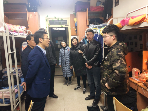 新学期伊始,为引导员工以新的精神风貌面对新征程,做好员工宿舍阵地建设工作,帮助员工培养良好生活习惯。2月25日晚,公司党委副书记张军驰,副经理王云峰、石宝峰一行带队检查了北校区员工宿舍,了解、关心员工的假期学习生活情况,并对宿舍安全卫生、寝室风貌等方面进行走访检查,学工秘书张静、各年级辅导员参加此次宿舍检查。
