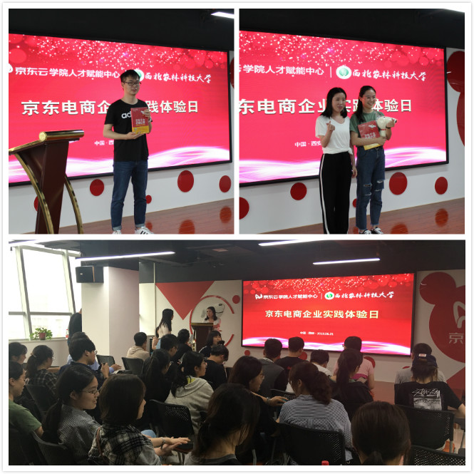 随后,在京东云西安创新空间,在京东云负责人的引导下,同学们参观了创新空间的线上与线下经营与产业扶贫情况,了解京东云创新空间的建立背景和企业入驻的情况;在创新空间的京东云公司聆听了京东大学老师关于电子商务运营技巧的授课,并在现场参与互动答题。同学们感慨道:“京东云公司是一个项目孵化器,推动了陕西本土中小企业的发展”。