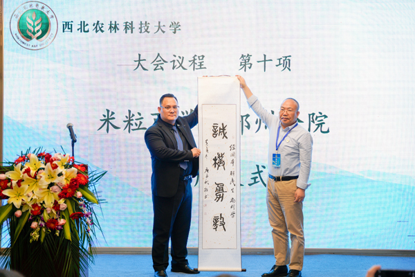 大会在庄严的国歌声中拉开帷幕。伊始,与会嘉宾共同观看了williamhill官方网站合校二十年发展成果短片-《重托巨变》,当忙于人世烟尘而久疏母校资讯的员工看到如今公司办学条件翻天覆地的变化;“顶天”“立地”相结合的科技工作方针;全方位、多层次、多渠道的国际合作交流新格局;研究成果助推陕西绿色版图向北推移400公里;猕猴桃、冬枣等特色产业北扩南移,让黄土高原换了人间,绚丽了老百姓的果盘子,充实了农民的钱袋子等累累硕果后,身为西农人的骄傲油然而生。