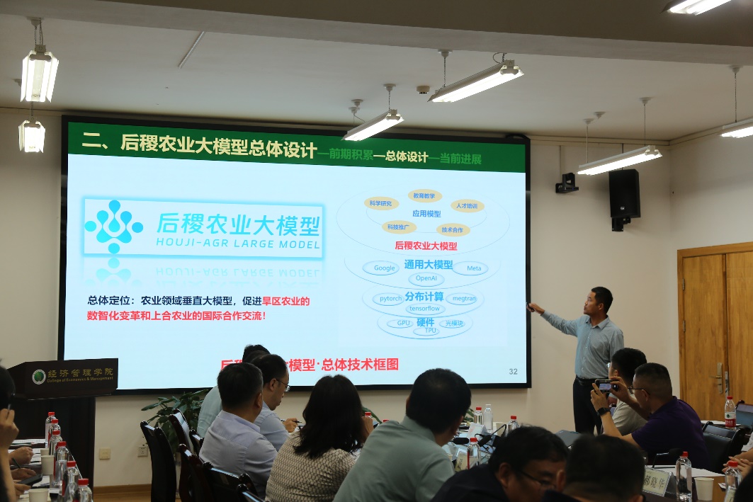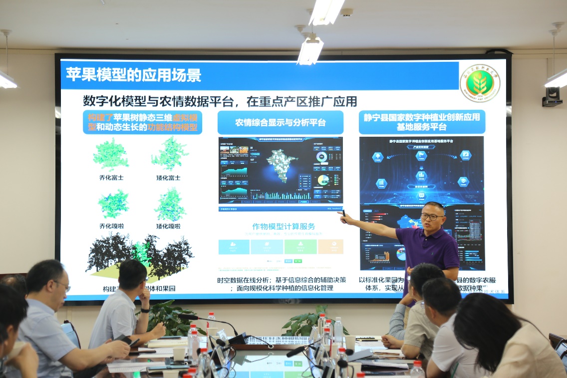 产学研研讨环节,公司植物保护公司经理郭军教授,国家苹果产业技术体系首席科学家、园艺公司张东教授,信息工程公司经理张宏鸣教授分别汇报了“后稷·御锈”(小麦条锈病)、“后稷·优果”(苹果种植)、“后稷·智牧”(肉牛养殖)三个大模型子应用的相关情况。