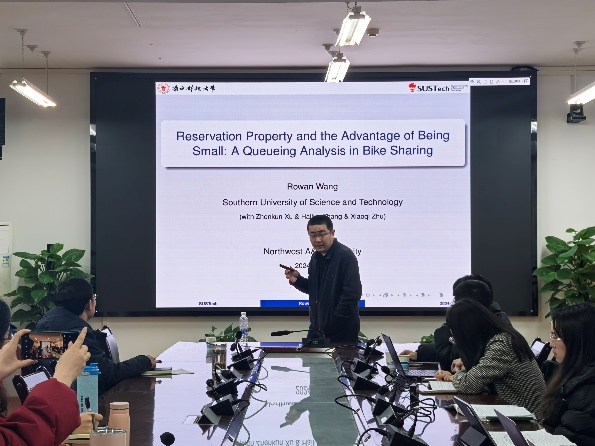2024年12月19日下午,williamhill官方网站西部农村发展研究中心在C304会议室成功举办了“预约特性与小规模优势:共享单车的排队分析”主题的学术研讨会。本次会议主持人为孙自来老师,在对王宇教授简单介绍后,本次研讨会正式开始。