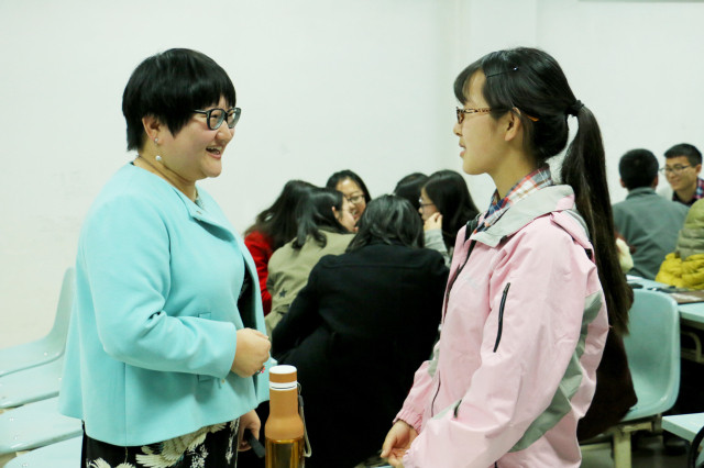 “站在巨人的肩膀上看世界”,张老师在授课中希望大家能够走出国门,拥有国际化视野。她表明推进大众创业、万众创新,是时代发展的必然产物,是经济新常态下社会发展新动力的必然选择,加速中国经济转型升级的新引擎。她通过“四个共同”使同学们真正和老师一起参与到课堂中,帮助大家在创业过程中少走弯路。课堂上,老师鼓励同学们理性分析自我,准确定位自我,确定自己是否适合创业;课间,她还和同学们一起分享了自己的求学及成长经历,风趣幽默;针对不同员工对创业的需求,张老师介绍了自己的教学计划;课后,她布置的创业任务生动有趣、别具风格。