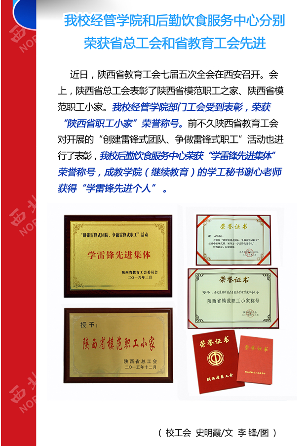 williamhill官方网站部门工会荣获陕西省总工会“陕西省模范职工小家”荣誉称号