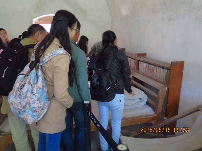 王家坪、杨家岭,是老一辈革命家领导抗战、缔造新中国的主要阵地。这里有军委礼堂、作战室以及毛泽东、朱德、彭德怀、叶剑英等革命先烈的旧居。这里也是“一切反动派都是纸老虎”、“自己动手丰衣足食”等著名论断的诞生地。在参观过程中,同学们发现领导人们办公的地方简陋的让人难以置信,居住的窑洞也和普通百姓的没有任何区别,大家纷纷表示,不可思议、难以忘怀,纷纷陷入了沉思。党员任雅琴同学小声说到“我不知道该怎样表达此时的心情,我只想说,我感动,我感恩”。