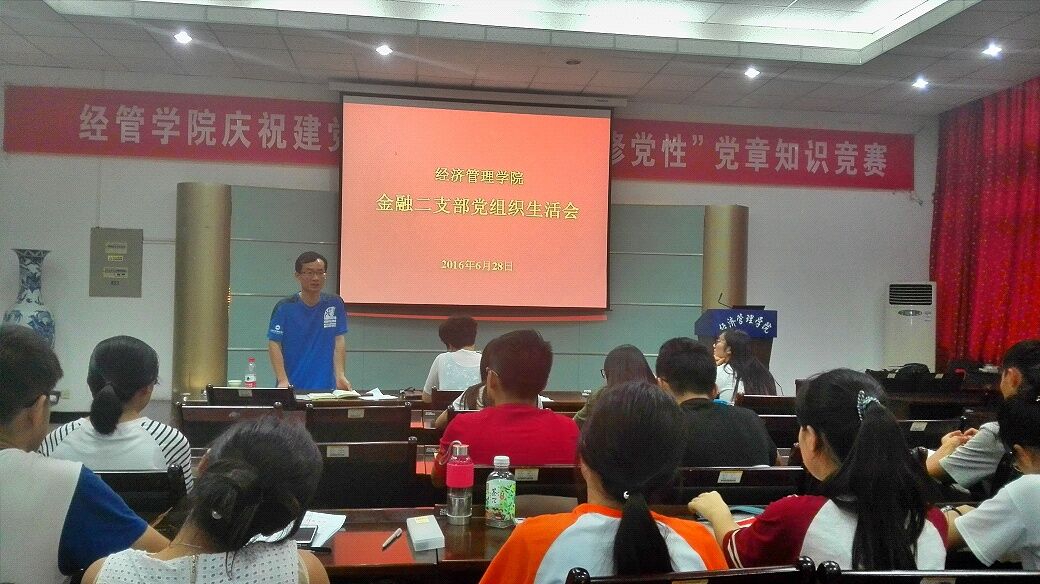 会上,姚晓霞书记首先以“学习习近平总书记讲话精神,做合格党员”为题,为支部党员上专题党课。姚书记指出,要学习和领会习近平总书记系列讲话精神,就要把握三个关键词:中轴线,时空观和中国梦。并立足金融二支部员工的实际专业背景,希望每位员工的有近期目标和远大理想,并将自己的“员工梦”,逐渐过度到14亿中国人民的共同梦想“中国梦”,把国家、民族和个人作为一个命运的共同体,把国家利益、民族利益和个人利益紧密联系在一起;时刻将富强、民主、文明、和谐、自由、平等、公正、法治、爱国、敬业、诚信、友善的社会主义核心价值观,做为自己立身处世的标准,不断提高自身素质,空谈误国,实干兴邦;既要仰望星空,也要脚踏实地,切实在学习生活的各个方面起到模范带头作用;党课最后姚书记结合金融专业党员的具体情况,给大家做了实习、就业和择业的相关指导。