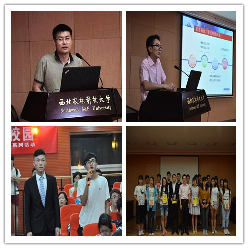 华福证券西北分公司直属营业厅总经理陈大路先生致辞,他针对前些年的金融行情给大家做了简单的分析,区分了股票与基金的特点,并对双方在不同时期的表现进行了简要的讲解。“金融行业,活着是第一位的”,公司优秀毕业生,现任华福西北分公司投教专员潘敏以这样一句话开始了本次讲座。他结合自身成长经验,与全体听众分享了金融市场的生存法则和私募基金的相关知识。他首先帮助大家明确了什么是私募基金,并列举出近几年在互联网金融出现的多起金融理财诈骗案,提到私募基金的五个基本特点:购买门槛高、通常有业绩报酬安排、股票的投资比例较公募基金灵活、往往有流动性安排限制、信息披露较少,并对股票和基金的收益与风险进行了分析,鼓励大家学会理财,谨慎理财。报告会最后以有奖抢答的形式举行知识竞赛,现场同学热情高涨、积极参加,现场很快便将20本与金融有关的书籍赠完毕。