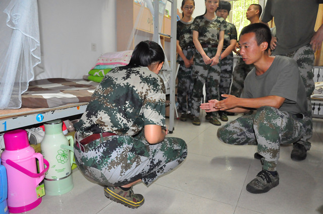 为培养新生良好的生活习惯,营造整洁的宿舍环境,8月23日下午,2016级辅导员与教官分别来到西区4号楼和11号楼,指导公司新生整理内务。