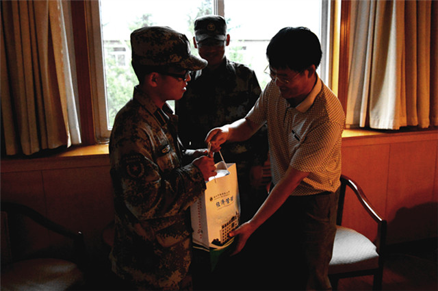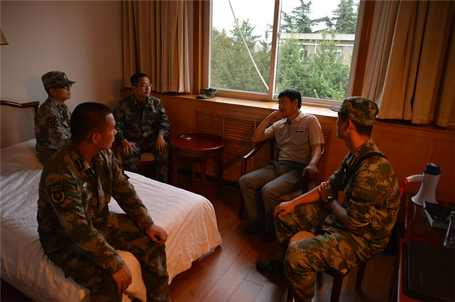 8月25日下午,公司党委副书记温晓林来到亦乐园宾馆看望军训教官,到达宾馆后,温晓林和教官们拉家常,了解他们的基本情况。