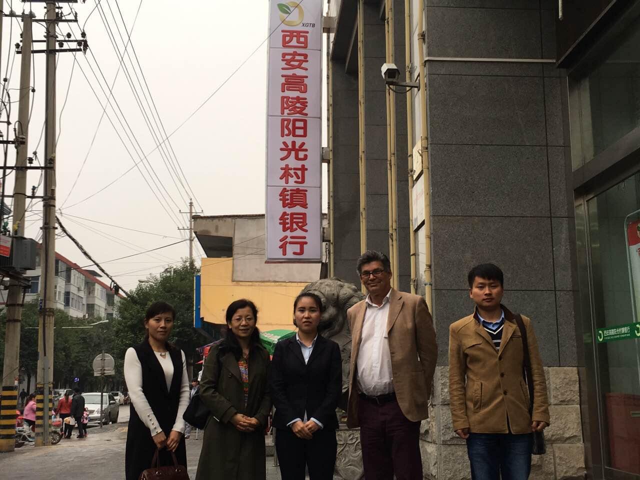 26日,在公司孔荣教授,博士生彭艳玲、苏岚岚的陪同下,Turvey教授先后前往西安市高陵区农村产权交易中心和高陵阳光村镇银行访问,并与相关负责人员进行座谈,围绕土地承包经营权价值评估、农户土地抵押贷款需求及额度、产权抵押贷款风险防范基金的运作、银行土地抵押贷款违约率及违约处置等问题开展交流讨论。
