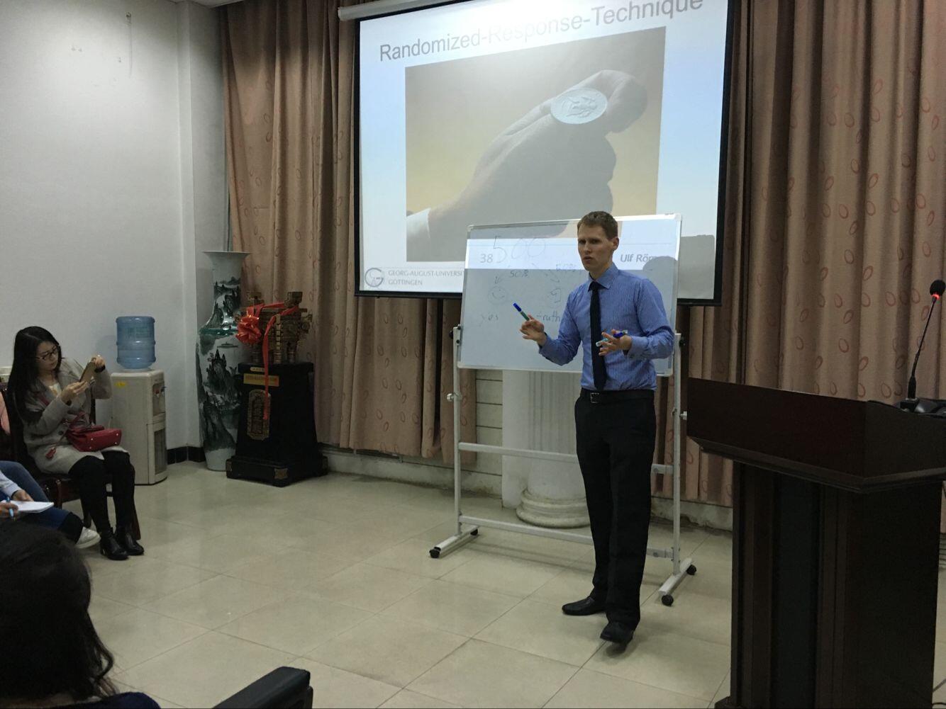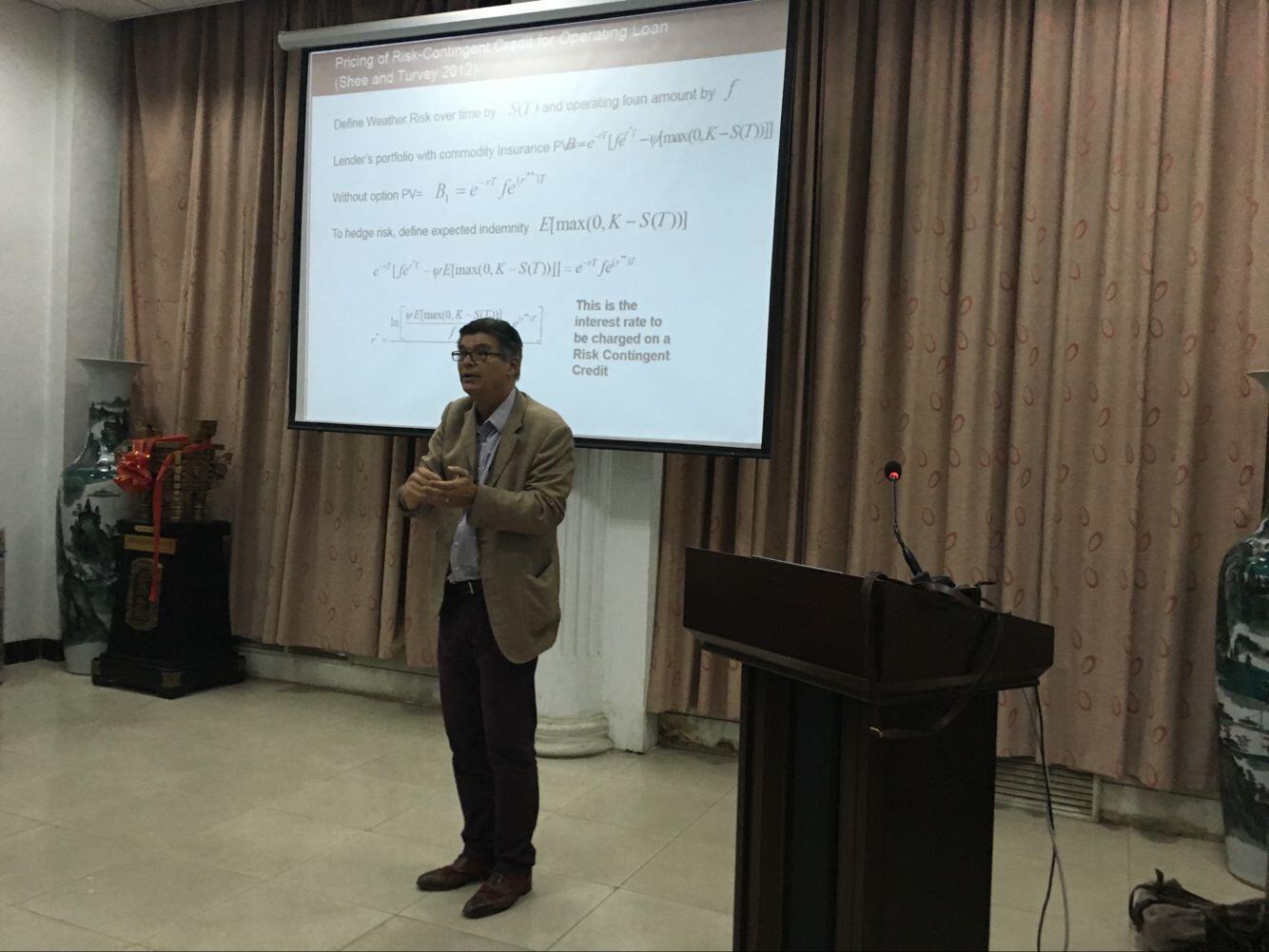 27日,Turvey教授和Ulf博士应邀在601会议室为公司部分青年教师和博硕士研究生分别作了“Insuring Agricultural Loans with Risk-Contingent Credit”和“How does asymmetric information in individual microfinance”的学术报告,回答了师生的相关提问,并就相关研究领域的热点问题与公司师生进行交流探讨。两位专家开放的授课风格,前瞻的研究视角,新颖的计量方法,使与会师生深受启发。