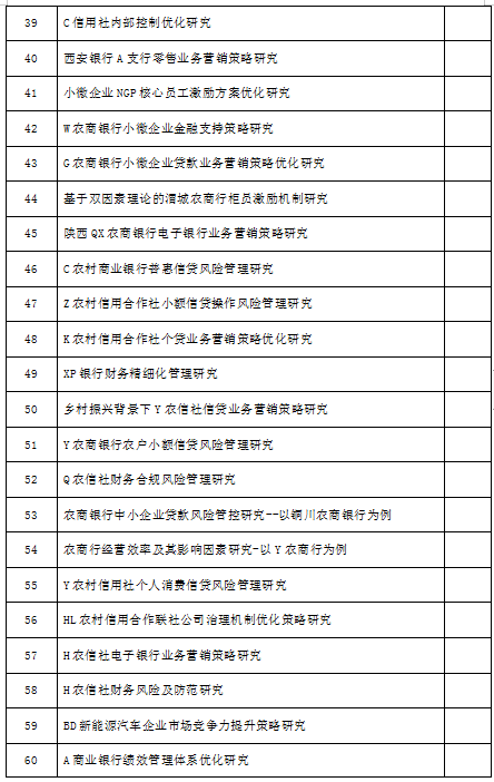 经陕西MBA公司第50次毕业论文评审,公司报送的全部毕业论文中,127篇通过(其中1篇评定优秀毕业论文),14篇需修改,0篇重做。具体情况如下: