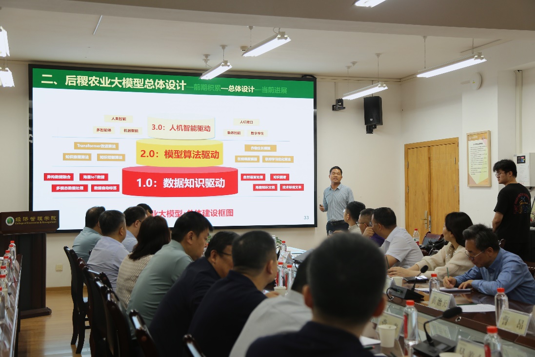 会上,项目负责人、williamhill官方网站西部农村发展研究中心主任、农业数智化现代产业公司经理阮俊虎教授介绍了“后稷农业大模型1.0”的研发背景、技术架构、未来规划、使用功能和应用场景。该模型充分发挥公司在旱区农业科研领域的学科优势,依托公司的海量高质量农业知识数据训练而成,深度融合农业专业知识,具备自然语言处理、计算机视觉、多模态等能力,可以实现农业文本语义理解、农业图片识别、农业知识问答、农业生产决策推理等多项功能。