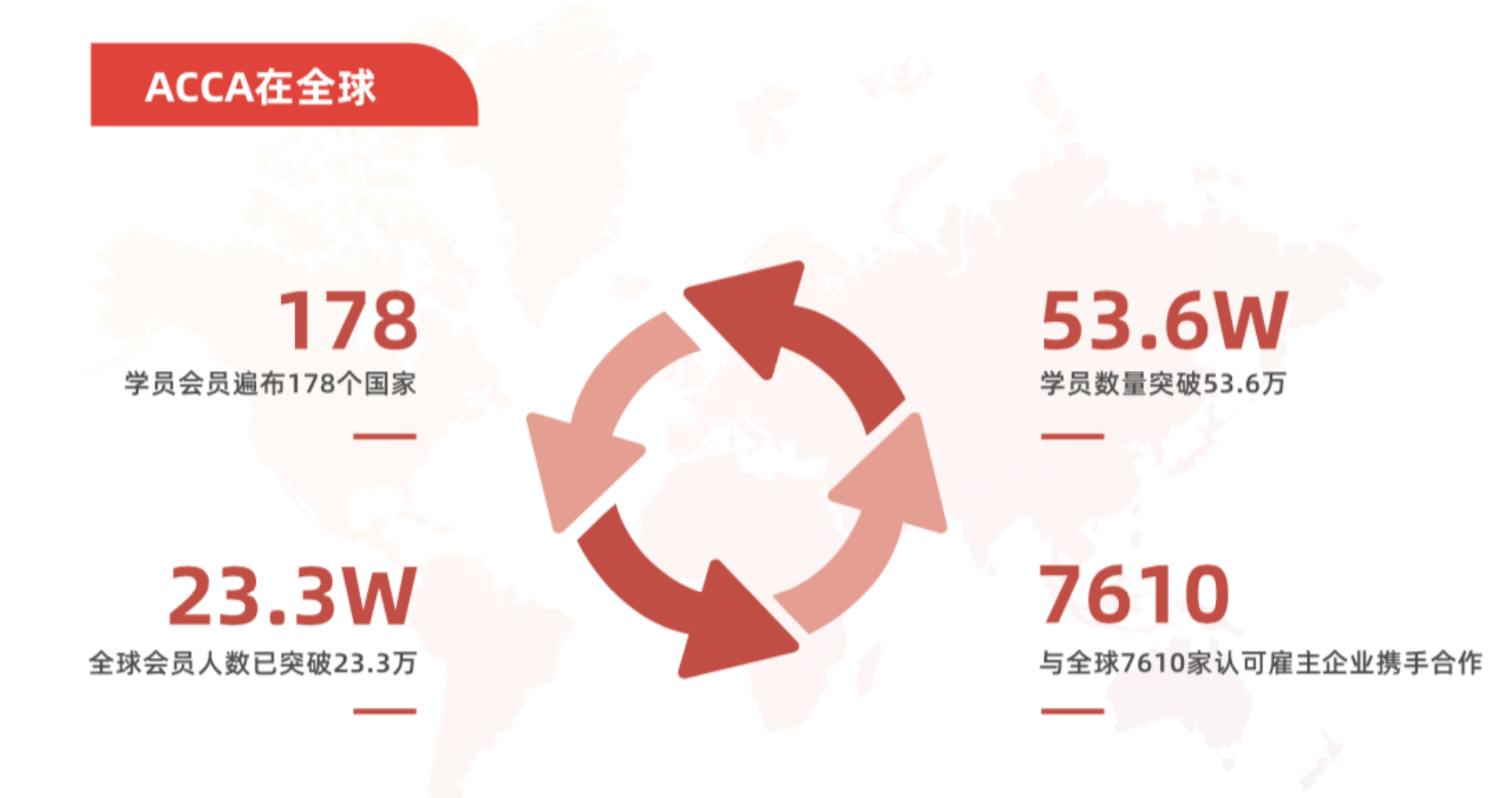 ACCA证书受到全球180多个国家和地区的认可,普遍在留学移民中惠及。目前全球有超过7610家认可ACCA的雇主企业,国内已超过800+家。ACCA对于立志于向商业社会发展的员工,是其在求职和升学过程中最有权威性、说服力的证书之一。