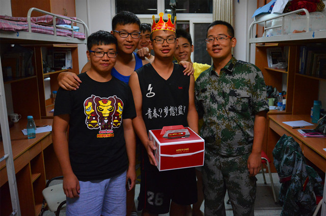 8月26日是一个新生的成年礼!在得知此事后,2016级辅导员梁子龙便想着为辛苦训练的新生度过一个特别的成年礼,于是他自掏腰包悄悄定了一枚生日蛋糕。