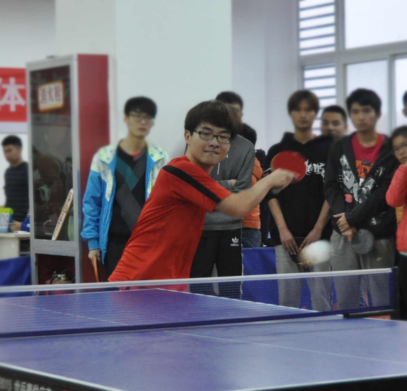 首先谈起他的乒乓生涯,周鹏达回忆到,自己从小学四年级就开始接触乒乓球,又去体校训练了两年。“那是一段艰辛和充实交织的时光,在密集的训练中我反复地练习,再练习,训练结束后穿的衣服都能拧出水来。”他一脸感慨的说到,“但是上初中后自己就开始正常的学习生涯,乒乓球也就慢慢地转变成了自己的兴趣爱好。”专业也好,爱好也罢,我们看到的都是他对于乒乓球的执着,他的奋斗,他的爱。谈到最喜欢的球员和获得过的荣誉,他说马龙是自己比较喜欢的球员,因为打球的风格很相似;而最为自豪便是自己曾经获得过河北省省级乒乓球比赛亚军。