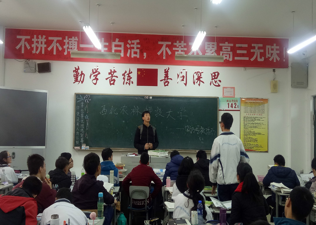 时光荏苒,转眼间一学期的老员工活已经结束。蓦然回首,才意识到日子的匆匆,对于三年前在母校的点点滴滴,但仍记忆犹新;回首在母校度过的3个春秋,依然历历在目。这回队员又踏上征程,去体味那三年的余温。以往的高三生活又一次回到了我的脑海中了。看着一张张笑脸,自己仿佛也回到了高三。看到每个班级后面都挂着高考倒计时牌,可以感受到他们现在的艰辛,毕竟自己也是从那时走过来的。但是,现在回顾一下,真的可以用这样一句话来概括——高三,痛并快乐着。高三的生活泪水与欢笑共存,阳光总在风雨后。4点半队员正式开始宣讲活动,向学弟学妹们介绍西农,分享学习经验。在宣讲时队员介绍了西农是国家“985”工程和“211”重点院校,队员向母校学子推广西农文化,宣传西农文化与历史特色。在活动中学弟学妹还向宣讲人员提出自己的问题与困惑,还有学弟学妹提到了西农彩土豆,这让队员更好地融入了与大家的交谈中。此次活动得到了老师与同学的大力支持,最终取得了圆满成功。