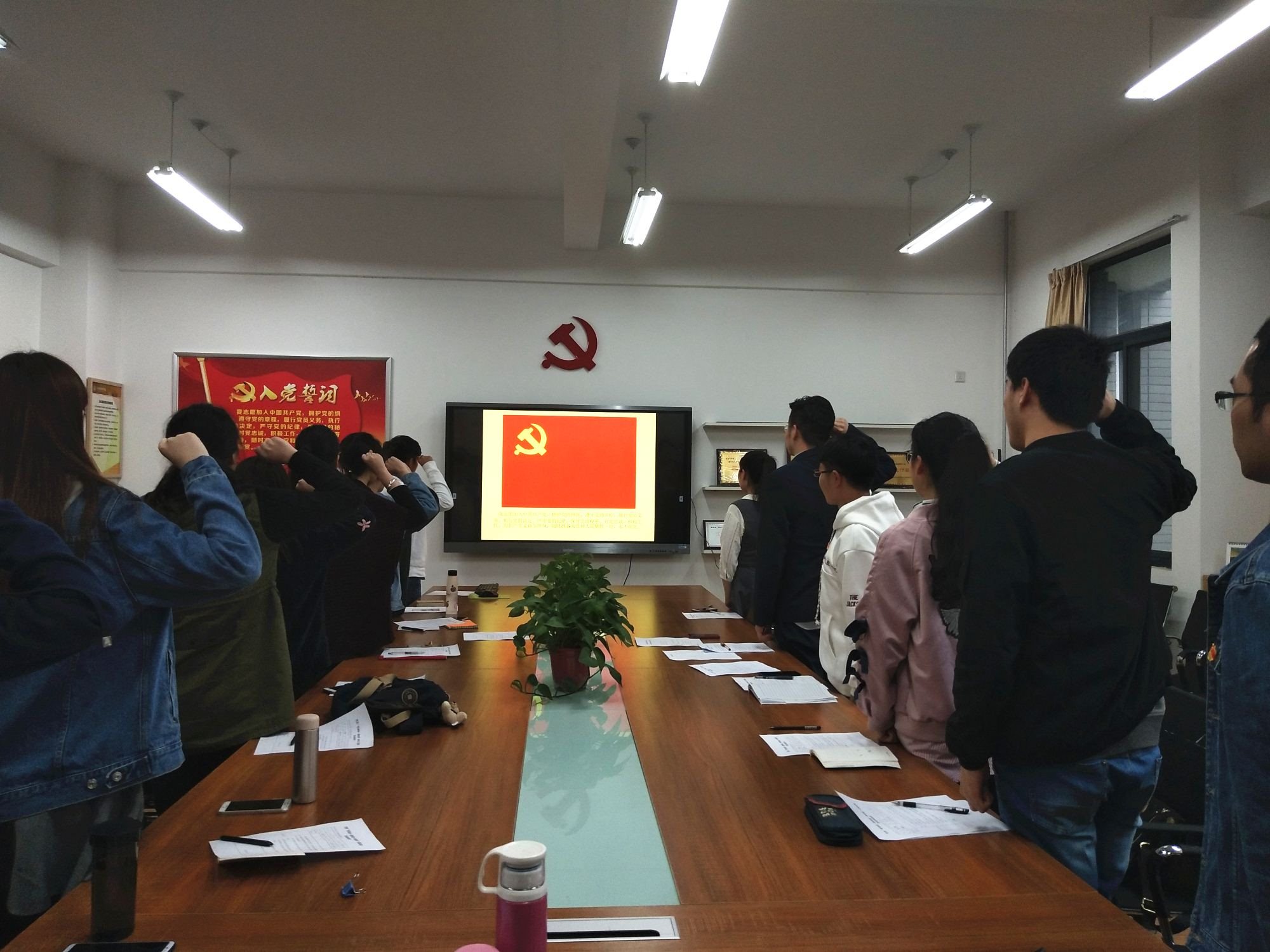 随后,张鹏飞宣读公司开展“亮身份·践承诺·树形象”活动的通知,全体党员及预备党员在支部书记张鹏飞的带领下进行宣誓,并对本次“亮身份·践承诺·树形象”主题实践活动进行详细介绍,国贸支部全体党员及预备党员写下自己的承诺,其中有同志写到:自觉鉴定理想信念,认真学习党的各种先进理论,做学习型党员。随后支部书记逐个为国贸支部成员佩戴党徽,同志们均表示感到非常的光荣与自豪,此次党组织生活在庄严的国际歌中结束。