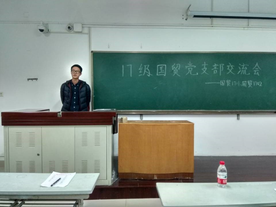 为了充分发挥党组织在班级工作整体规划和员工成长中的思想指导功能,帮助同学们更好的规划老员工活,树立明确的目标,在辅导员老师倡议下,11月28日晚上在北校N8117教室,17级国贸专业召开党支部交流会。交流会邀请国贸党支部党员常丽颖学姐、钱峥学姐、王正洋学长、王立成和苏金平学长参加,由国贸1701班团支书王小凤、1702班团支书白健主持。