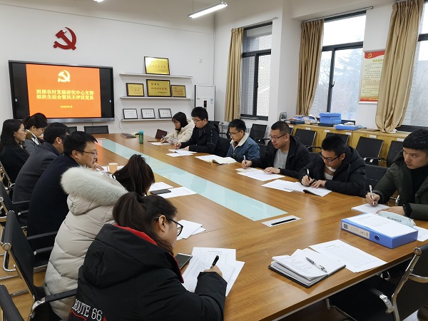 为了深入学习贯彻习近平新时代中国特色社会主义思想和党的十九大精神,提升党支部组织力,查找纠正“四风”突出问题,西部农村发展研究中心党支部于3月1日下午在公司C205会议室召开了党员组织生活会和民主评议会。本次会议由支部书记刘军弟老师主持,公司党委委员、党委副书记张军驰老师受邀出席,支部全体党员参加。