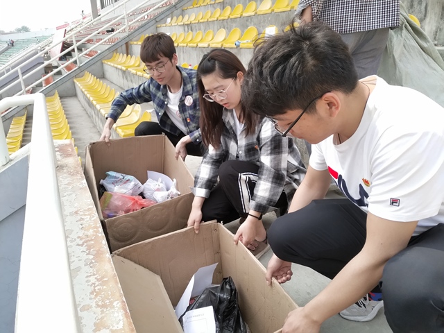 活动伊始,负责人廖钎铅强调本次实践活动主题为志愿服务校运动会,全体支部成员必须以饱满的热情与积极的态度做好今日的服务工作。在合理分配工作任务后,支部党员佩戴党徽分三批进入会场。首先,支部成员加入为公司加油助威队伍,震耳欲聋的呐喊声展示出青年党员的激情与活力,坚定地击鼓声带来青年党员的热情与荣誉感。部分成员主动承担起维护公司观众席纪律的责任,严谨又温和的提醒,展现出当代青年党员的良好使命感与责任感,对纪律性的坚守与严格,体现了良好的党组织教育成果。最后,支部成员加入公司观众席清理工作,以小见大地积极响应党组织对生态文明建设的要求,青年党员主动从日常生活做起,积极响应习近平总书记所倡导的“要像保护眼睛一样保护生态环境”,时刻牢记党组织的教诲。