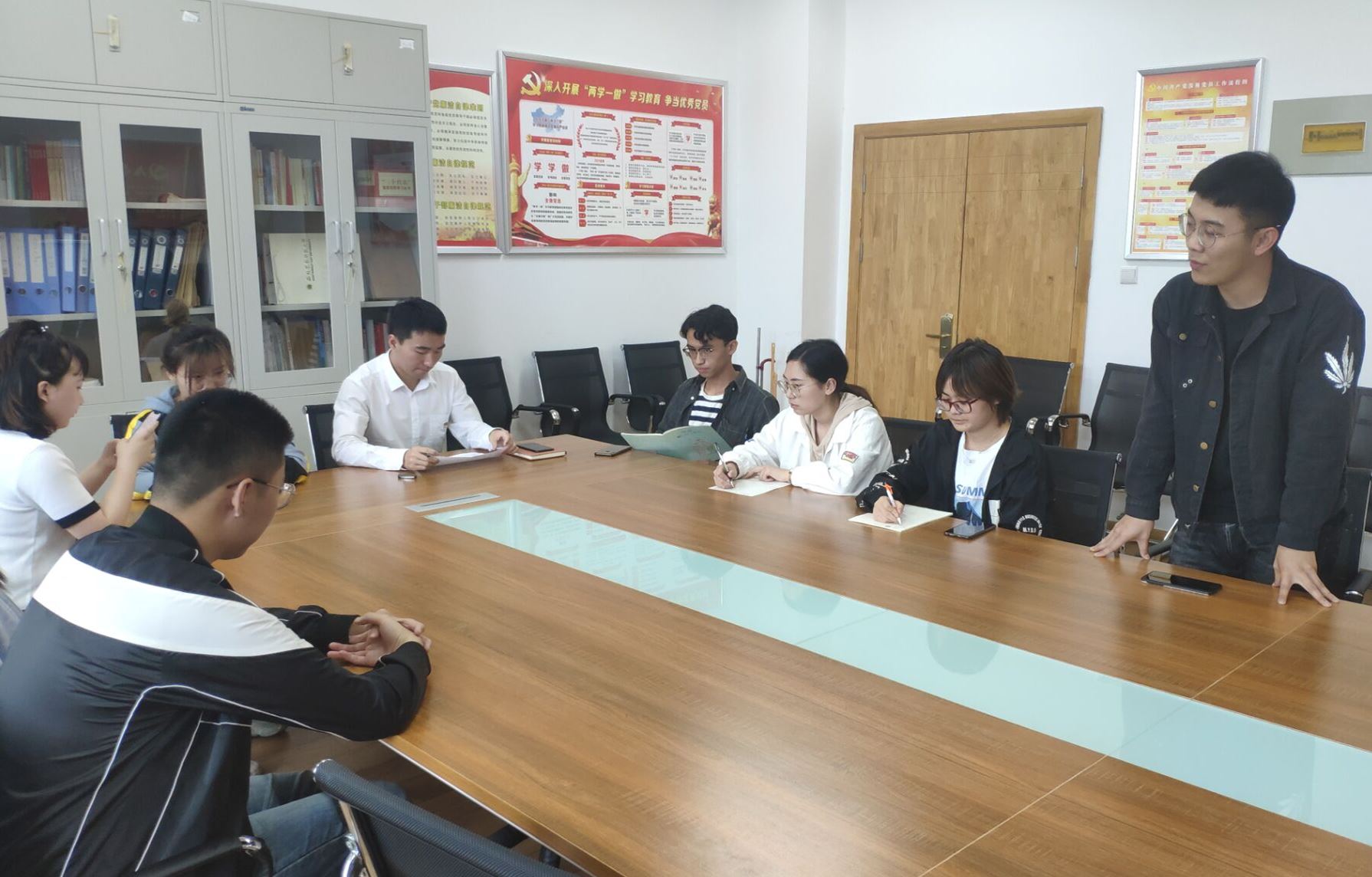 会议主要讨论了方如园、张笑、刘鹏、崔椿浩、曹质涂等5位同志的转正申请事项。会议开始,五位申请人依次宣读转正申请书,分别从思想、学习及生活方面讲述了自己在这一年预备期中的表现,表明自己入党的决心。随后,介绍人兼支部委员分别介绍了申请人在一年预备期的表现,并进行了评价,同意这五位同志按期转正。随后进行全体与会人员投票,五位申请人均全票通过。支部书记孙权同志宣读支部大会决议,他指出,这四位同志思想端正,学习上进,基本具备党员条件,同意方如园等五位同志按期转正,并新转正党员提出要求:一要从思想上先入党,要仔细认真研读十九大报告全文,领会十九大精神;二是加强专业理论知识的学习,用知识武装头脑,提升自我修养;三是要在学习、生活上要用党员的标准严格要求自己,提高党员意识,服从组织安排,对党组织安排的活动要认真负责对待,要做到“不忘初心,牢记使命”。