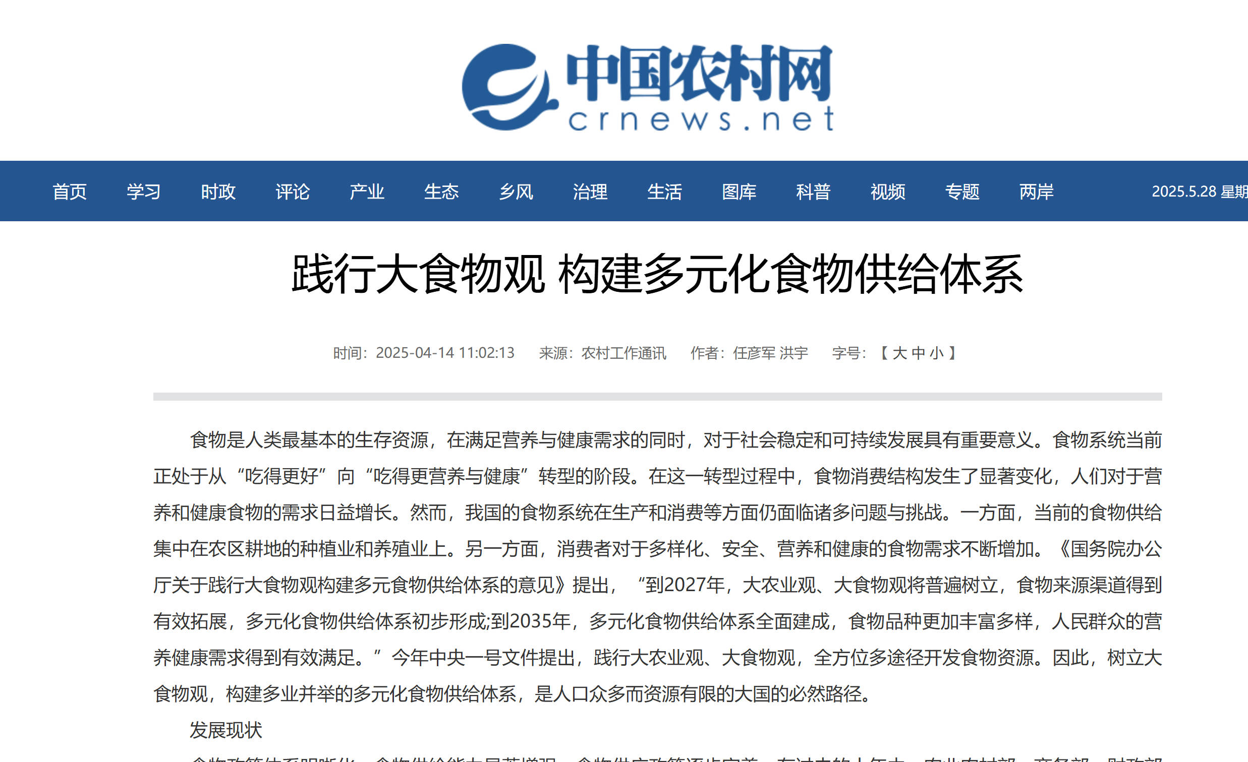 • 任彦军:践行大食物观 构建多元化食物供给体系