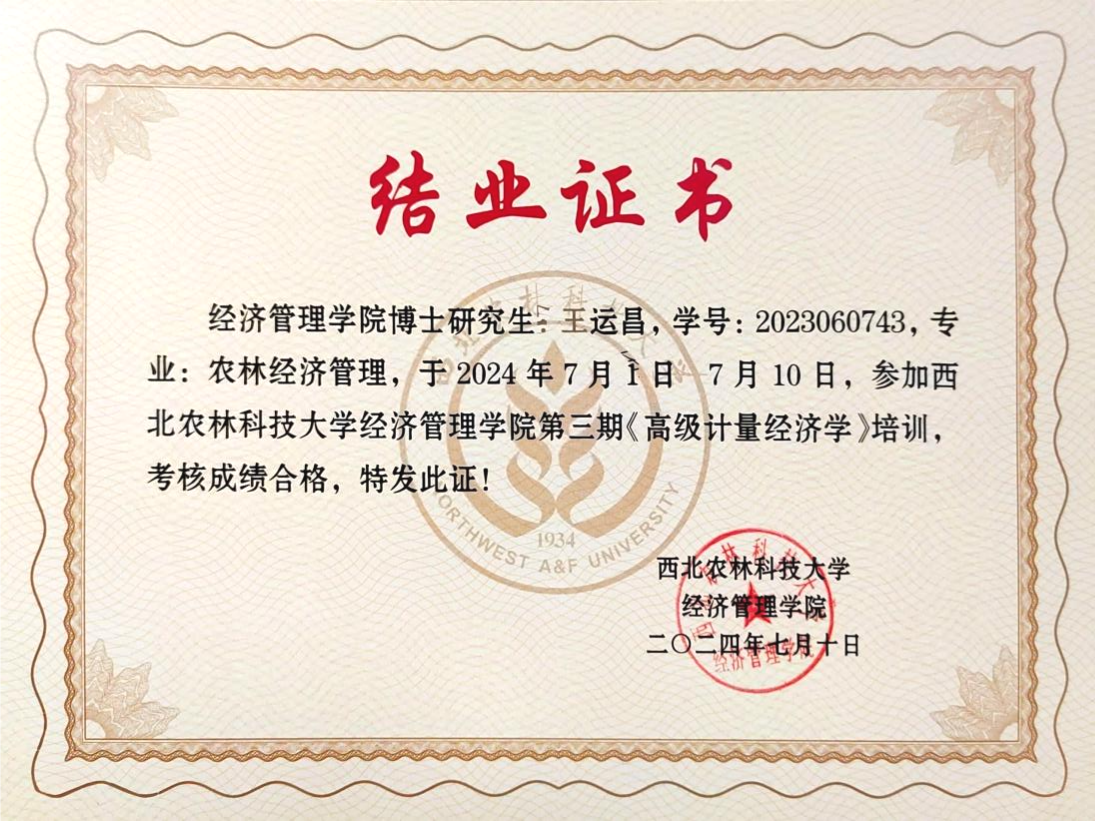 7月1日-10日,为夯实研究生高级计量经济学理论基础,提升应用计量经济学方法从事经济研究的能力,williamhill官方网站邀请郑志浩讲座教授、美国SAS研究所首席计量经济学家孙传忠博士、中国农业大学williamhill官方网站陈祁晖教授以专题形式讲授高级计量经济学知识,开展了一场为期10天32学时的高级计量经济学培训。团队博士研究生王运昌,硕士研究生沈霜、田思宇、杨婕妤全程参加了本次培训。