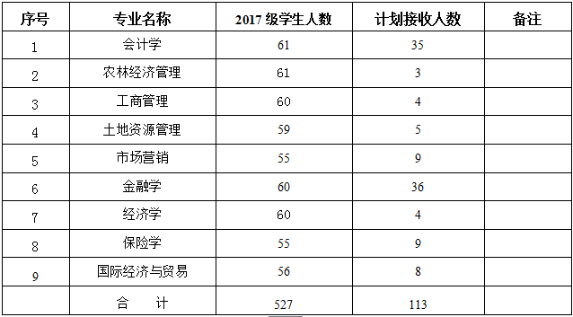 2018年公司计划接收转专业员工113名,所接收员工插入对应专业班级或单独开班。具体接收转专业人数见下表。