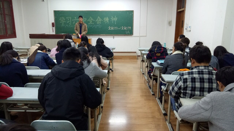 10月30日下午,金融153、154班在N3211开展以学习十八届六中全会精神为主题的团组织生活,本次团组织生活在于向同学们传达十八届六中全会的重要内容与会议精神,提高同学们思想先进性与积极性。