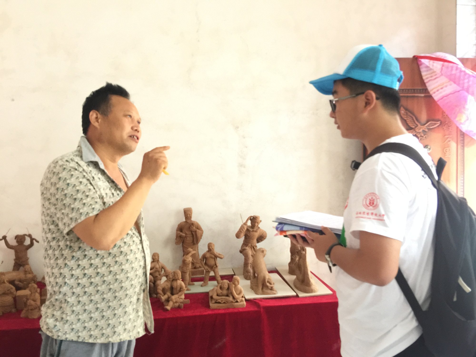 当日下午,调研团队决定去距离城区不远的注明泥塑村六营村。2002年,邮局发行的邮票中用了该村的3座泥塑作品,从此,该地便成了凤翔文化的一种代表。下午顶着烈日,调研小组一分为二,分别对村子的前半段和后半段进行了调研,通过对整条街的走访分析。同学们不仅获得了很多数据,同时也学到了很多当地的风俗文化。