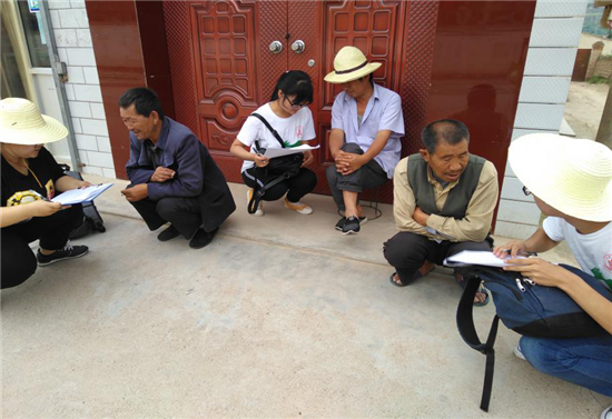 在村口,队员们就发现了很多老人坐在阴凉处休息。队员们上前询问了村庄的基本情况,并对他们进行了问卷调查。经过一上午的调查,队员们发现这个村子的土地质量不是很好,而且白白送出去也没有人要,因此土地存在着大量撂荒的现象。对于这样的土地,若能集中利用起来,可能土地荒废程度就会有所改变。