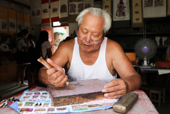 张连生老先生在刻板