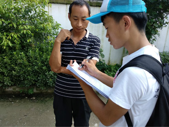 同日上午,调研团乘坐公交车前往距商南县十多公里的试马镇,征得当地政府认可并了解基本情况后,调研团展开了本日调研工作。试马镇周边村庄的易地搬迁迁入地集中在团结路移民小区,为此,调研团采用调查问卷搜集信息的形式在该移民区进行“地毯式”访问、记录。移民积极热心回答、配合,调研活动顺利进行。