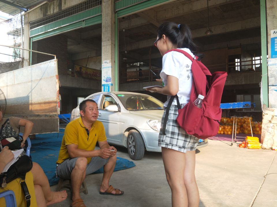 在调研后期,我们小队转换阵地来到了霞寨镇,深入农户家里和蜜柚收购大棚做些简单的问卷调查。蜜柚的种植主要是农户个体种植,基本家家户户都或多或少的种植蜜柚,少的有两三百棵,多则上千棵柚树。早期,大多果农都是种植白肉蜜柚,因为红肉、三红等品种的蜜柚收购价格更好,所以现在越来越多的果农嫁接其他品种的蜜柚。因为蜜柚成熟的季节还没到来,所以很多蜜柚收购大棚还没开工。队员们耐心地走访了附近所有的蜜柚大棚,幸运的是,不少的蜜柚大棚已经开始运作,我们才得到些前几年的蜜柚收购、销售数据。