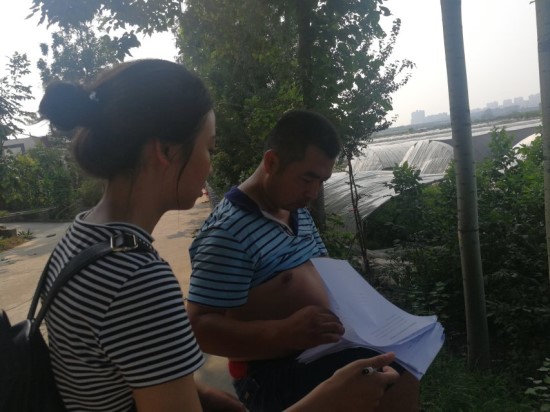 小队首先向当地村委会了解村子的大致情况,随后便在村子里展开走访调查。队员们冒着三十八摄氏度的高温,穿梭在在陵湾村的大街小巷内。在此次问卷调查中,当地的村民非常热情,都有很高的积极性,有时遇到一些年龄稍大的农户,我们便把问卷改为问答的形式以提高效率,同时也保证了问卷调查的客观性以及真实性,很快我们就完成了调研。