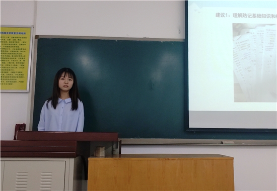 交流会伊始,王依凡向同学们介绍了市场营销专业的学科特点及课程设置,从基础学科与延伸课程两个方面进行简要概述与分析。接着,王依凡结合自己的学习经验向同学们提出五点建议:第一,要理解熟记基础知识和概念,认真对待每一次作业;第二,关注营销新鲜事,可关注“局部气候调查组”“成功营销”等营销方面的公众号,充分利用碎片化时间了解最新最热的营销时事并学习一些专业知识;第三,积极参加各类活动和比赛,锻炼自己的人际交往能力、沟通协调能力;第四,要利用假期做有意义的实习,学习如何将理论知识用于实践,锻炼社会关系的处理能力;第五,提高自己的科创能力和英语水平。随后,王依凡又重点分享了自己的四六级学习方法及科创经验,员工们感到收获满满。