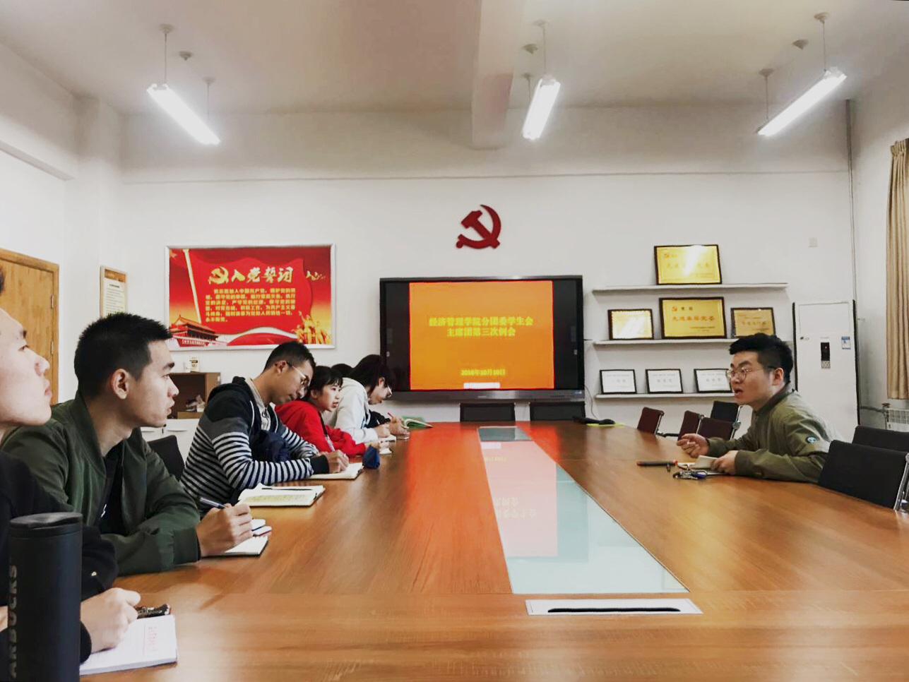 10月10日,公司分团委员工会主席团第三次例会于C205会议室召开,辅导员张鹏飞及主席团全体成员参加会议,会议由张鹏飞主持。