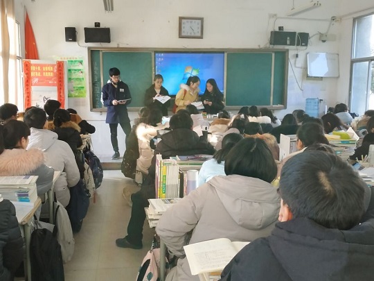 在与队长原高三班主任吴老师的协商下,陕西一队小分队在高三7班和8班进行了宣讲活动。1月18日下午4点,陕西一队与吴老师取得联系进入母校,首先与吴老师在办公室交谈,了解这一届学弟学妹的情况,向吴老师汇报大学的心得,与老师聊聊家常。随后,陕西一队小分队便在7、8班进行了宣讲。
