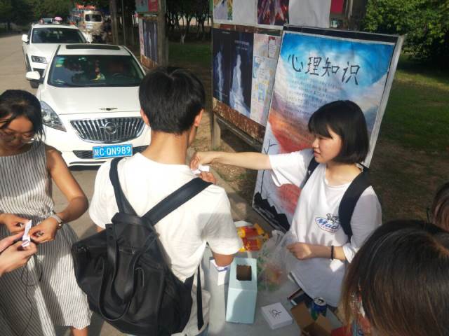 5月25日下午,北校西区雕塑热闹非凡,员工处心理健康教育与发展中心主办的第四届阳光护航暨“5.25心灵之约”活动正在开展,现场设置了心理测量、现场咨询、心理插画展示等活动,公司心理咨询部的员工干部在现场摆放了心理知识展板,向同学们展示老员工常见的心理问题及识别和应对方法,还设置了答题游戏,同学们随机抽取题箱里的问题,抽到后作答,如果答对即可领取小零食,如果没有答对可以到展板上找寻答案,记住答案后返回工作人员处背出准确的答案即可成功领取奖品。一下午的时间,现场约有50多名同学参与了竞答活动,个别同学在参与竞答后还向现场的咨询师求助想进一步深入地了解相关的心理学知识。