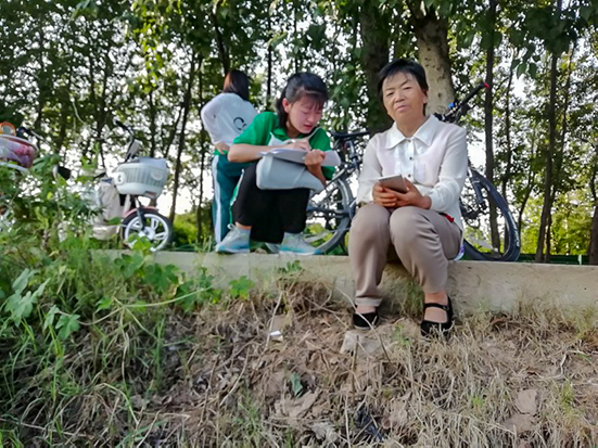调研队员在采访热心的阿姨