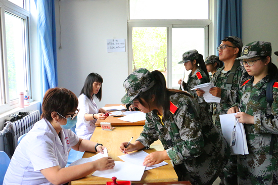 踏着清晨的清新凉爽,经管新兵们准时集结在校医院楼前。19级辅导员王冠英、李治霖全程陪同员工参与体检,在辅导员、各班主任助理、校医院工作人员与新兵们的双双配合下,本次包含抽血、胸透、测量视力、测量血压等多项内容在内的常规体检得以有序进行。清晨就要空腹身着军装来到医院抽血体检,新兵们的稚嫩脸庞上都蒙上了一层虚弱,辅导员实时关注、暖心关怀,以最快的效率安排员工完成抽血,引领员工及时就餐,补充能量。随着一个个体检项目的完成,时间已临近中午,为保证员工的身体安全,促使员工以更加良好的状态投身于后续的训练,统一通知新兵们体检过后尽早安排午餐,为新兵们空出了大量午休时间。